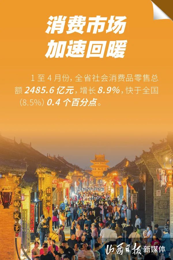 5月19日,山西省统计局公布1至4月份,全省经济运行情况:1至4月份,全省工业生产平稳增长,消费市场加速回暖,就业物价总体稳定,经济运行延续恢复向好态势。一组海报,了解1至4月山西经济数据。