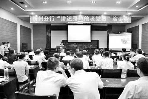 炎炎夏日,热情似火。在建行忻州市分行12楼会议室内,一场以“庆祝建党96周年,讲述身边的老党员”为主题的演讲会正在隆重上演。