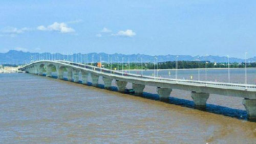 原本,这座大桥将于今年8月底通车。它将成为东南亚地区最大的跨海大桥,设有6车道,时速达80公里。