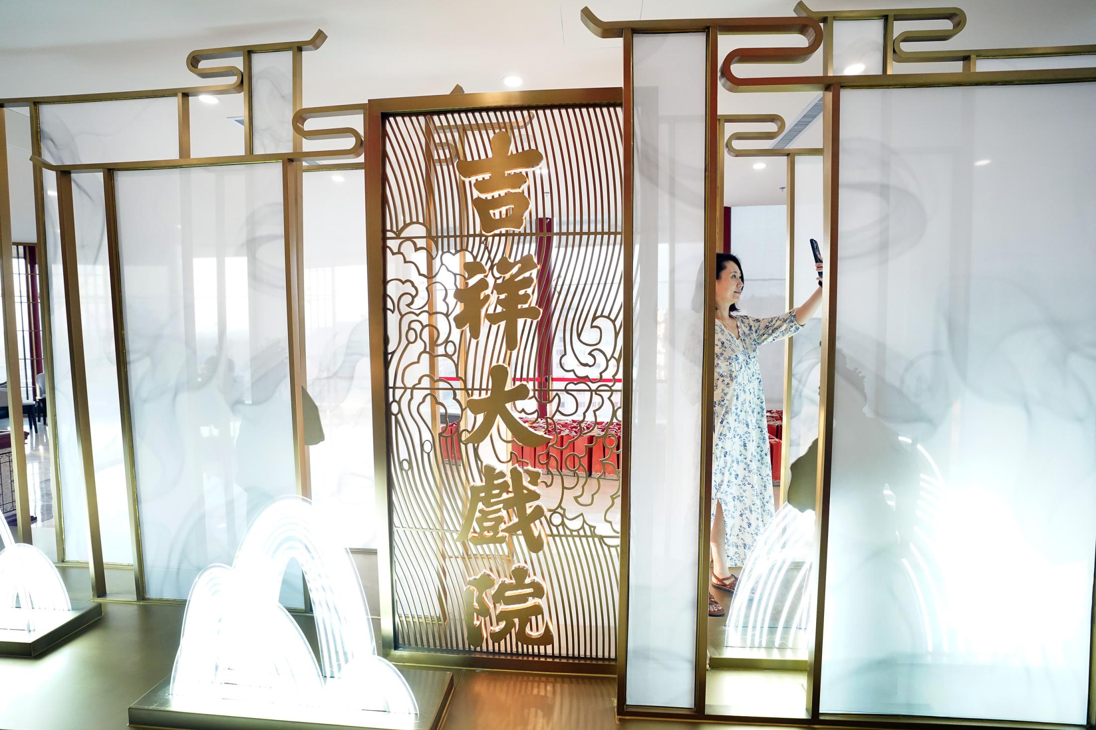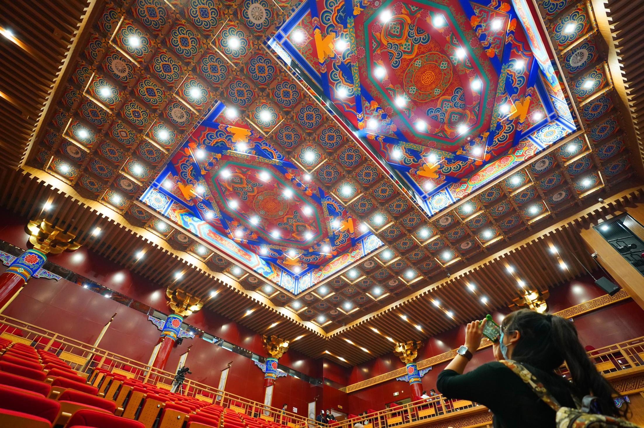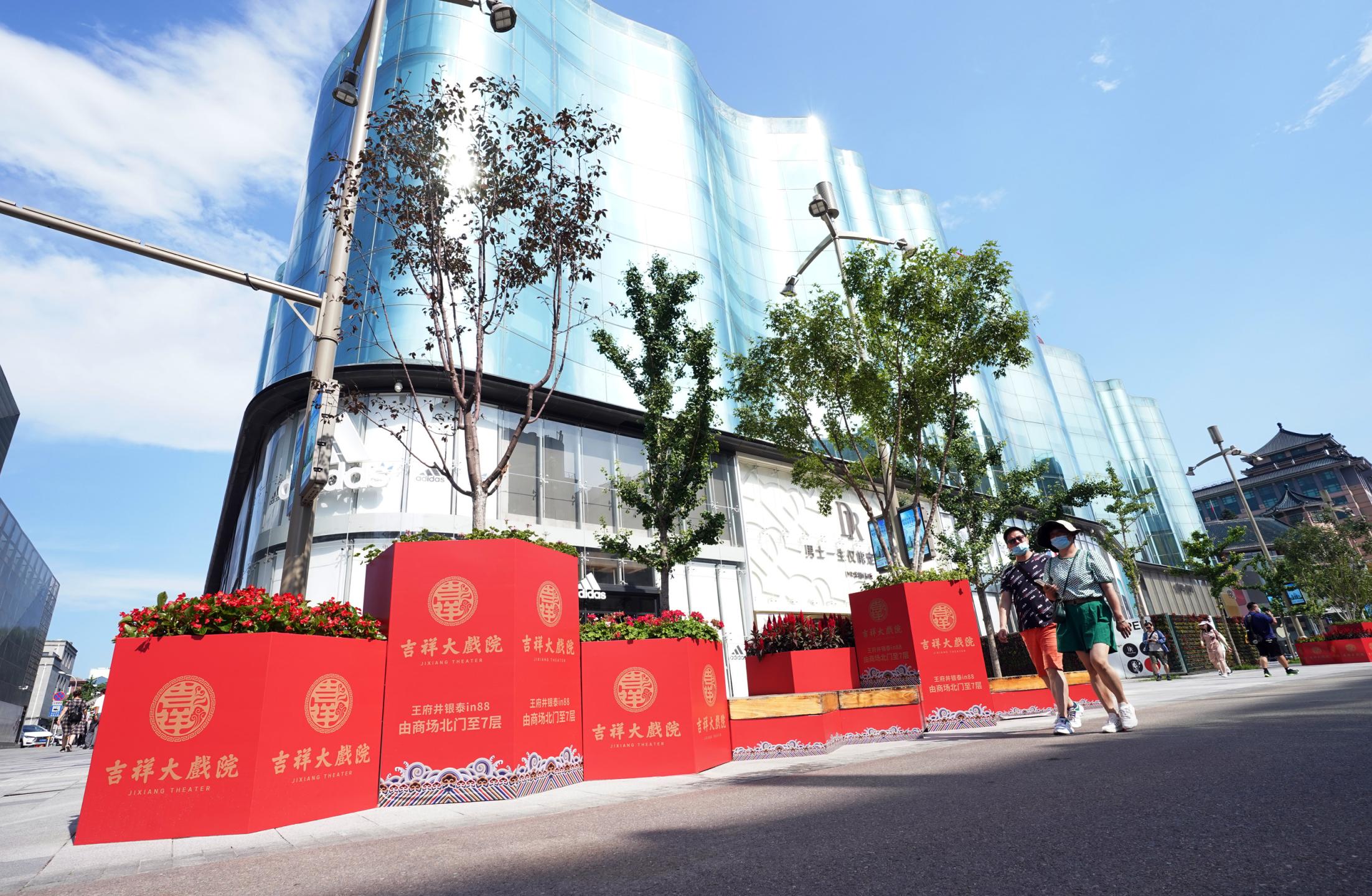 2021年7月9日,时隔28年,由北京市文化和旅游局、北京市国有资产经营有限责任公司共同出资,北京京剧院、北京市演出有限责任公司共同运营的吉祥大戏院重张启幕。这座“藏身”于银泰in88大厦7层、8层的空中戏院占地面积达4000平方米。乘电梯上楼,初入眼帘的前厅清新雅致,落地窗外可见王府井熙攘的人群与远处故宫、景山等古都风光;剧场内,明清风格古朴庄重,藻井彩绘繁复斑斓,传统的“旋子彩绘”上增加了大量寓意吉祥的“万字不到头”图案,与戏院的名字彼此呼应。