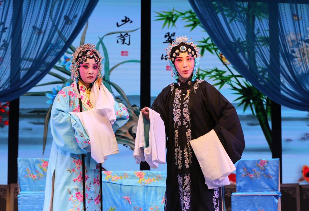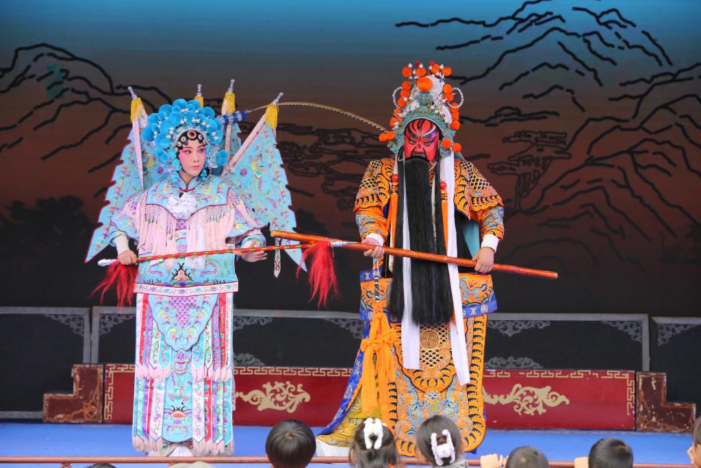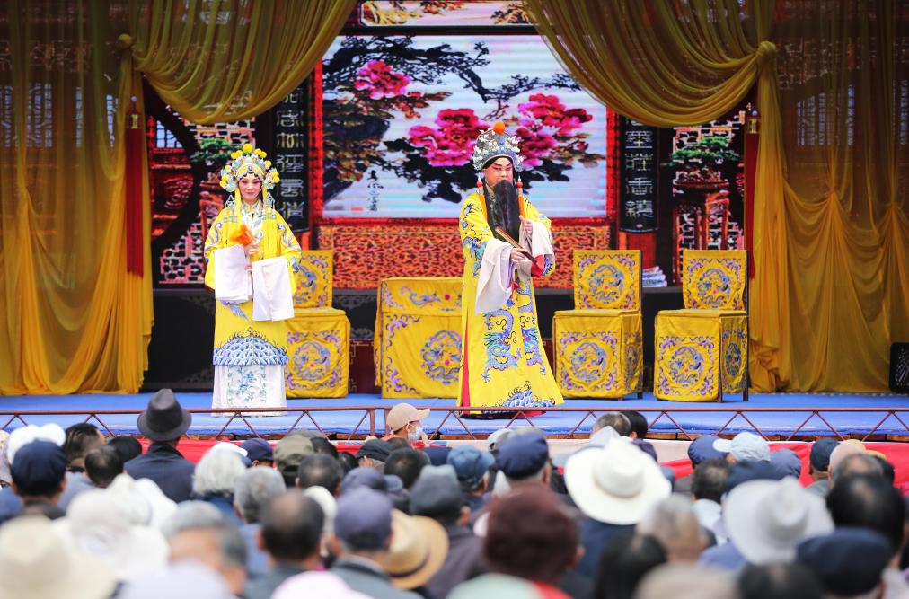 演员在甘肃省定西市体育公园演唱秦腔经典传统剧《打金枝》(9月19日摄)。新华社发(王克贤摄)