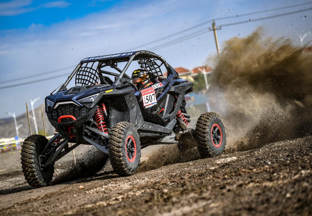 10月4日,北京山顶道车队车手苑意在UTV组场地排位赛中。新华社记者 冯开华 摄