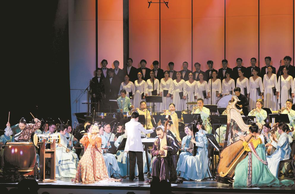 作曲家孔志轩分享了演出细节,此次他优化了第五与第六篇章。“第五篇章《风骨铮鸣》扩充原有结构,层层递进间让风骨内涵更立体丰满;第六篇章《星河共潮》则精简结构,凝练打磨各部分音乐形象,核心是凸显中华民族屹立不倒的民族气节。”