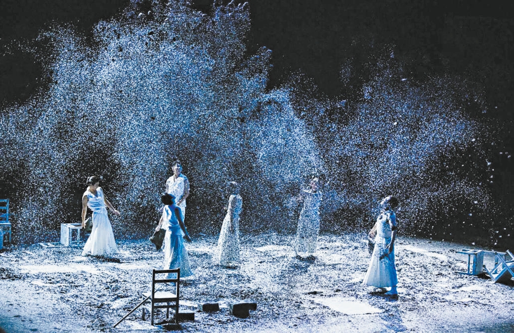 剧作者没有给石辛忏悔的机会,而有更大野心。她显然并不满足于这个故事所呈现出来的人性善恶的两难。剧中安排戎夷的女儿、石辛的师妹芙蓉对石辛说道:“老天爷会审判你的。”而石辛表示,根本不相信有老天爷。芙蓉又问他是否后悔,他说:“我不后悔。”这实际上预留了解读这个故事的另一种可能。石辛是个不肯用心思考上苍、人心和至善的人,说明他已经丧失了悔过的可能。不仅如此,他还视自己为识时务者、人生赢家。