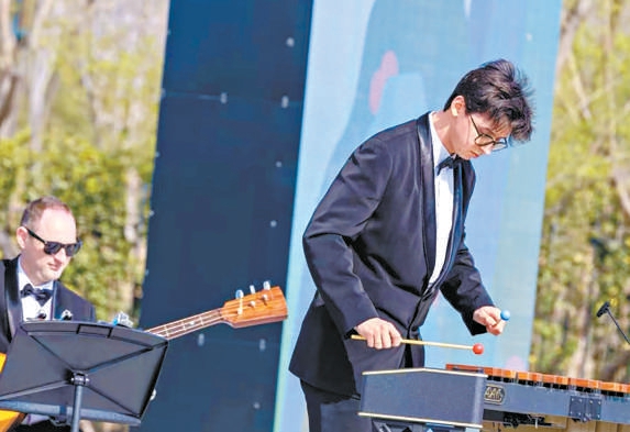 奥西波夫国立模范青年独奏家民族室内乐团在绿心露天剧场演出。记者方非 摄