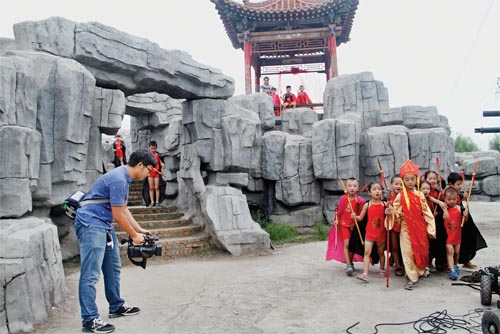 8月18日,原平市白路口才主持艺术班的小学员出演的魔幻微电影《大战红孩儿》在该市牛卧河公园开机。此次演出活动目的是培养孩子的想象力、幽默感,同时提高他们在演艺方面的能力与艺术修养,让他们拥有积极健康的心态,敢于表现自我、挑战自我、超越自我,在生活、学习上打下良好基础。据了解,影片制作完成后将在优酷等网络进行播放。