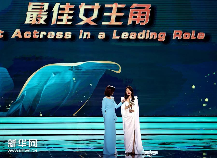 凭借在电视剧《少年派》中的表现摘得最佳女主角奖的闫妮领奖。 当晚,第26届上海电视节顺利闭幕,白玉兰各奖项揭晓。白玉兰最佳中国电视剧奖由《破冰行动》夺得,演员陈宝国、闫妮摘得最佳男女主角奖。 新华社记者 刘颖 摄