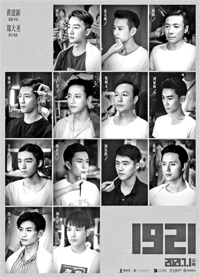 10月19日,由黄建新监制兼导演,郑大圣联合导演的电影《1921》宣布将于2021年7月1日全国公映,并首次曝光了主演阵容——由黄轩、袁文康、祖峰、窦骁、王仁君、张颂文、刘家祎、王俊凯、韩东君、刘昊然等饰演中共一大代表。据悉,1921年,一大参会代表的平均年龄只有28岁,正是一群青春朝气的热血青年。为了更贴近真实人物,演员除了要年龄符合,更要“形神兼备”。黄建新导演透露,为了选出样貌和静态上最像角色的演员,筹备时在办公室两面墙上贴满了照片。