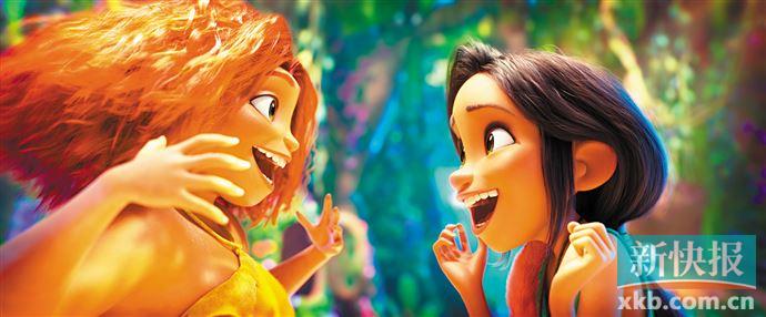 除了绚烂的视觉奇观,《疯狂原始人2》中创意十足的人物细节无疑是一大看点。铁汉柔情的“瓜哥”和幽默有梗的少年“盖”依然欢乐十足,咕噜家族与全新角色“文明人”家族之间的戏剧冲突和逗趣桥段则让影片的“笑果”更加升级。