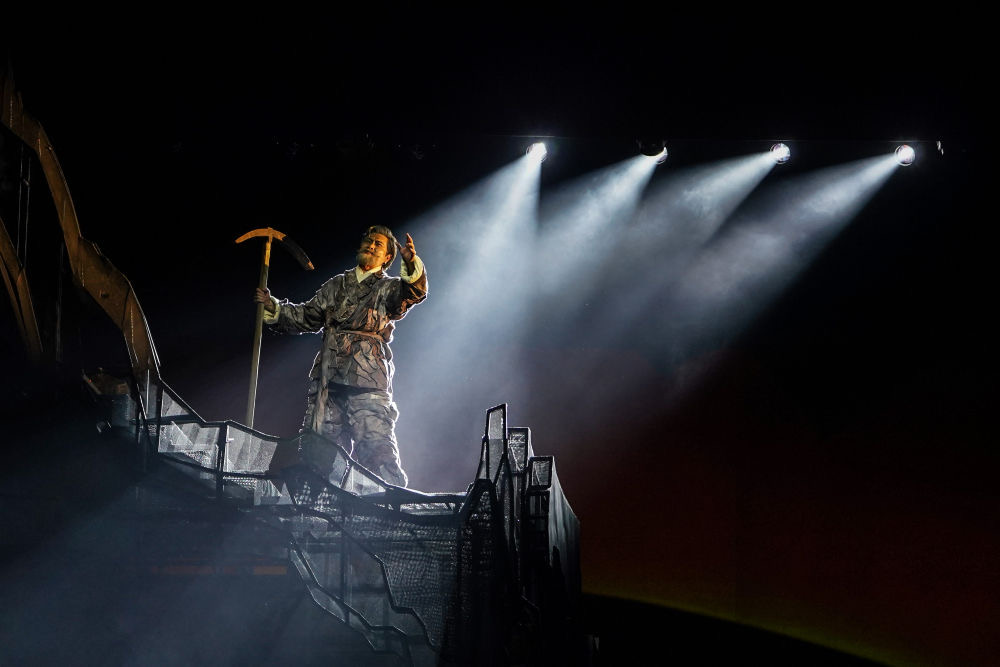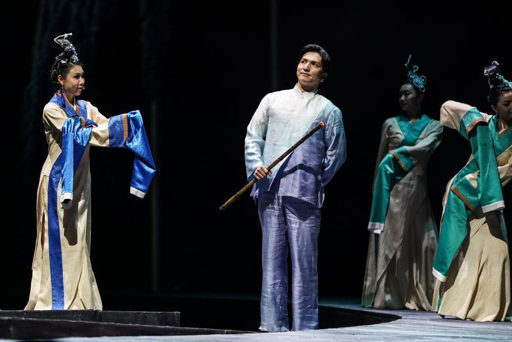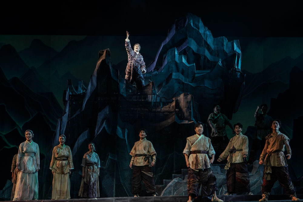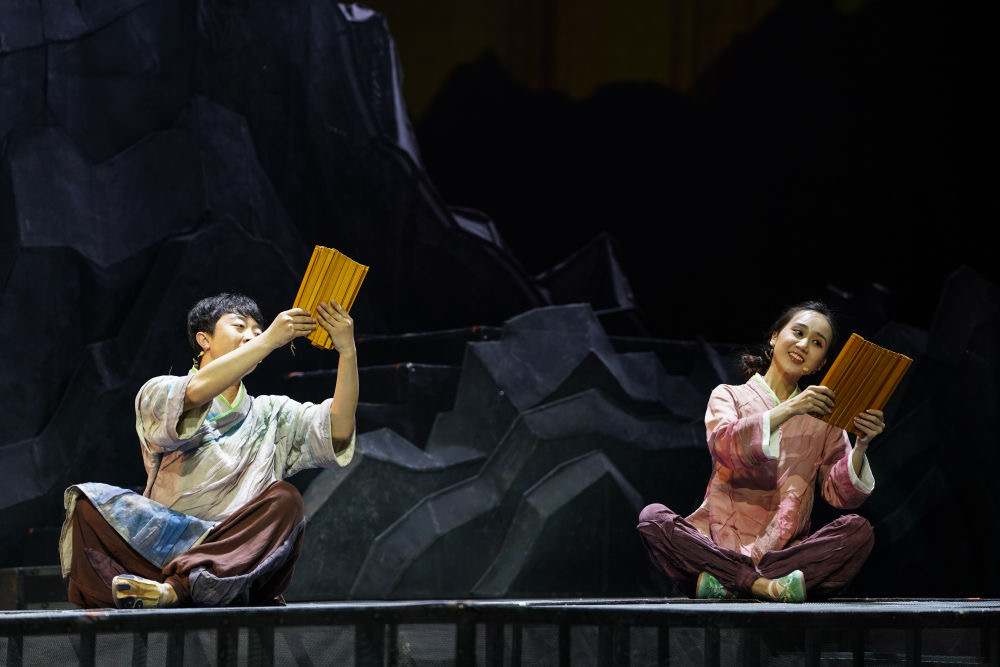 5月27日,大型说唱音乐剧《愚公移山》在位于北京的中央歌剧院首演。音乐剧《愚公移山》是2022年度河南省重点文艺创作项目,由济源产城融合示范区党工委宣传部、文化广电和旅游局出品,北京大学民族音乐与音乐剧研究中心创制。全剧采用说唱的艺术形式,以传承和弘扬愚公移山精神为线索,讲述了当代大学生将传统文化纳入现代视野,不断打造新生活、开拓新境界的新时代奋进故事。新华社记者 彭子洋 摄影报道