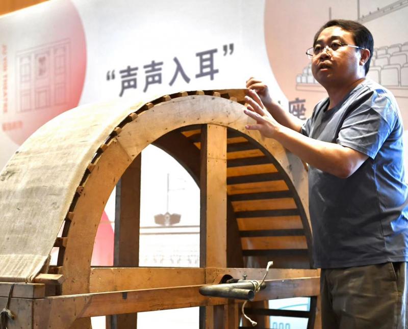 而看起来并不起眼的两片三合板则是闷雷效果的制造者,随着晃动,依靠空气的震动,“雷声”一声紧似一声,而这也成为经典话剧《雷雨》中最重要的音效。雨声则是靠扇子上串珠子的晃动营造出大珠小珠落玉盘的效果。据悉,早年间演出时,后台的画面也十分震撼,十几个人一人拿一块板子分两侧而立形成矩阵,在指挥的引导下次第晃动,郑晨说,“在没有电声、没有便携录音设备的年代,一场《雷雨》因此也生动传神。”
