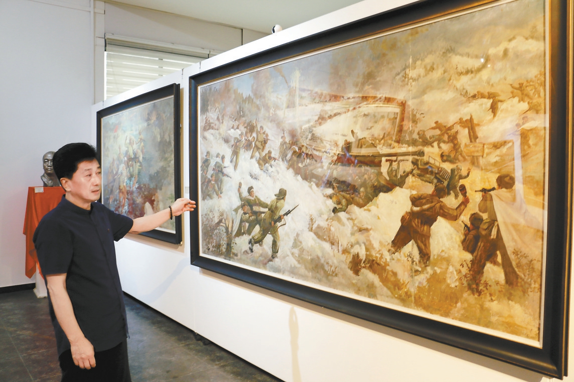在朝鲜万寿台创作社美术馆,还收藏着梁玉龙的《黄继光》、柳青的《邱少云》等经典作品。当代新作方面,由中国画家史国良与朝鲜功勋画家金仁石合作的巨幅《胜利鼓声》,融中国画与朝鲜画艺术于一体,画里画外都凝结着中朝两国人民并肩战斗的深厚友情。“朝鲜万寿台创作社美术馆多次举办中朝友谊展,弘扬伟大的抗美援朝精神和中朝友谊。先烈们的牺牲换来了珍贵的和平,当年的艺术家们也是冒着生命危险,留下了那段历史的佐证,这是我们不能忘却的记忆。”吉正太说道。