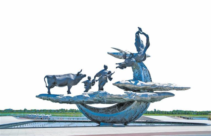 昆明池·七夕公园内的艺术装置鹊桥仙。 西安昆明池景区供图