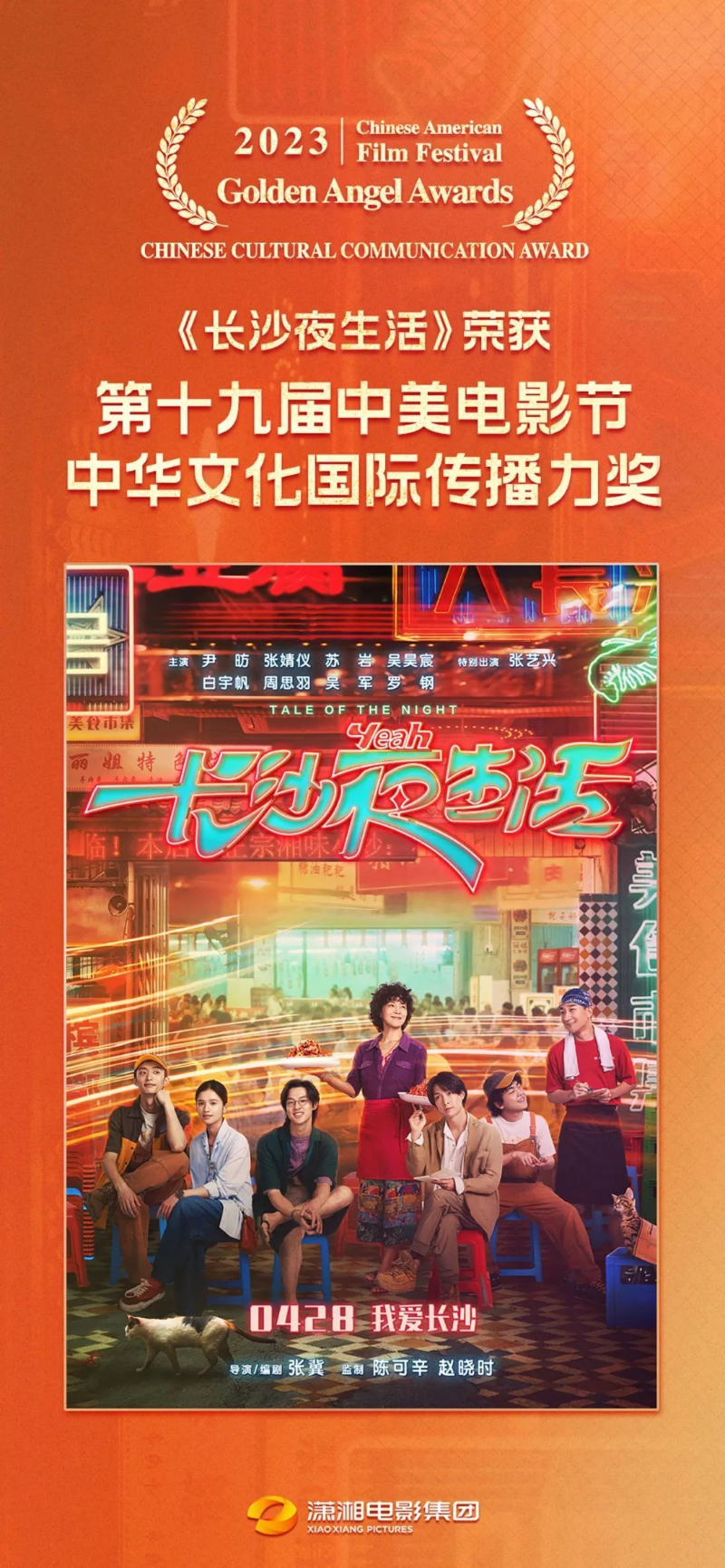 11月1日,第十九届中美电影节和中美电视节开幕式暨“金天使奖”颁奖典礼在美国洛杉矶举行。由潇湘电影集团领衔出品的电影《长沙夜生活》荣获第十九届中美电影节“中华文化国际传播力奖”。