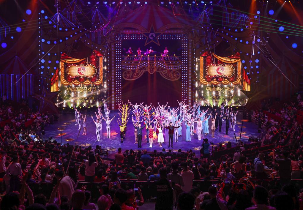 演员在第七届中国国际马戏节参演节目A场展演后集体谢幕(11月5日摄)。新华社记者 刘大伟 摄