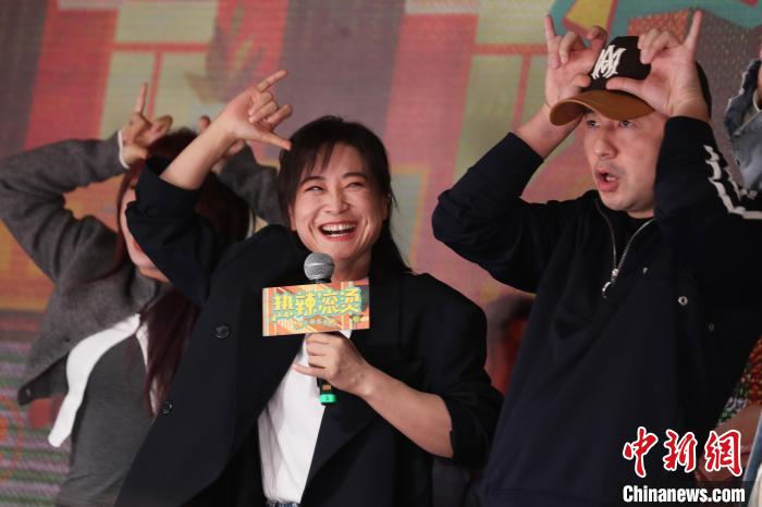 《热辣滚烫》的主创团队与观众合影。中新网记者 张亨伟 摄