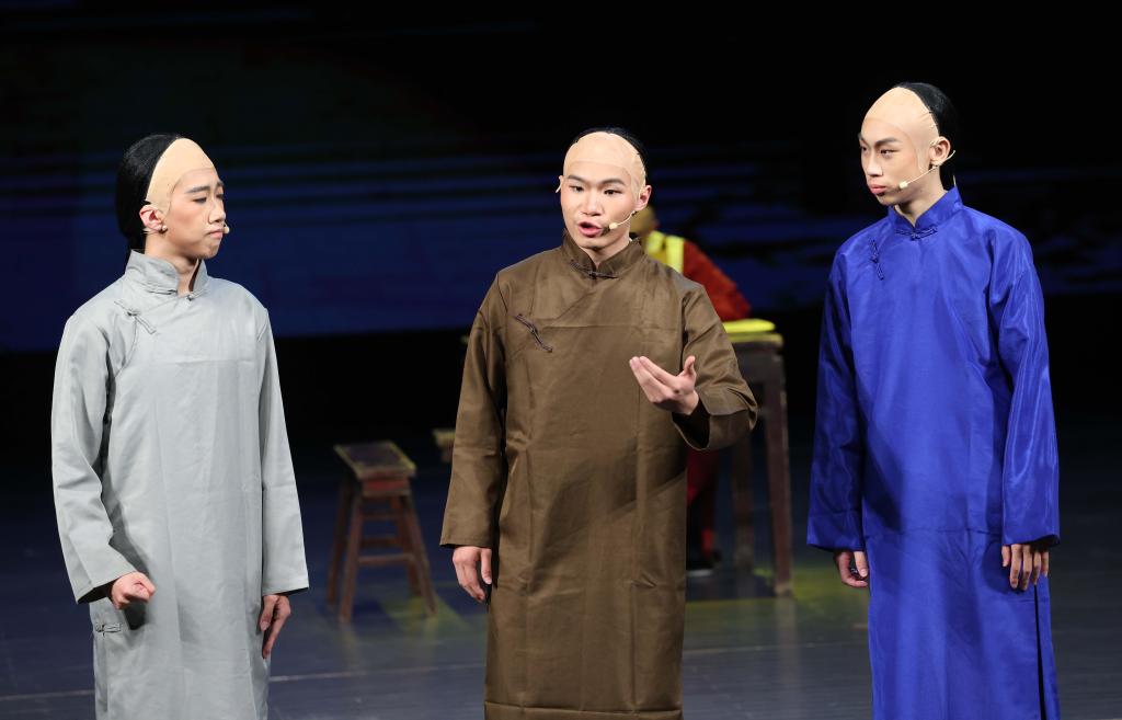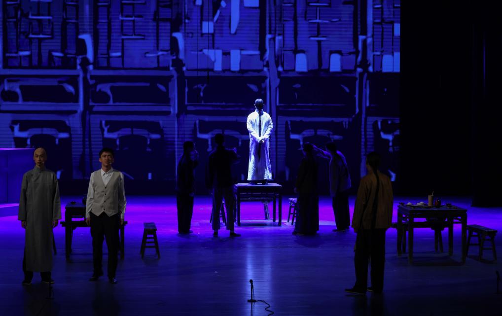 当日,中国人民大学附属中学分校戏剧实践课程开展成果展示,高中学生们在北京国安剧院演出大型四幕话剧《呐喊》,生动演绎了鲁迅笔下阿Q、孔乙己、祥林嫂等众多经典形象。