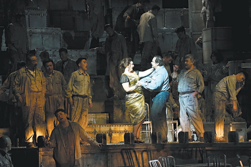 颇有年代感的大皮箱摆了一地,台球桌横陈潦草,酒杯满天乱飞,酒馆老板、矿工、盗匪粉墨登场,一派粗粝的莽荒气质扑面而来,如同一部酣畅淋漓的西部大片。上周末,国家大剧院制作的普契尼歌剧《西部女郎》正在紧张彩排,7月23日至27日,著名指挥家卡罗·利兹将执棒国家大剧院管弦乐团,携手中、美、意三国艺术家组成的创演阵容,把这部描写加利福尼亚淘金热的歌剧带上2024国家大剧院歌剧节的舞台。