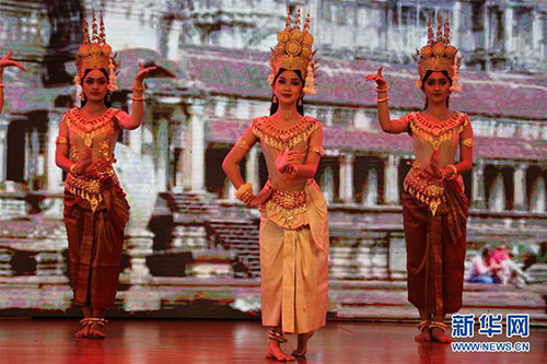 1月30日,在柬埔寨金边,柬埔寨舞蹈演员在表演舞蹈。新华社记者 毛鹏飞 摄