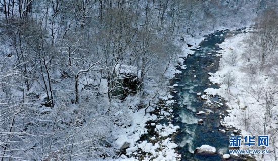 11月25日无人机拍摄的秦岭西安段沣峪口雪景。 当日,秦岭雪后初霁,重重山峦在白雪覆盖下宛若仙境。 新华社记者 刘潇 摄