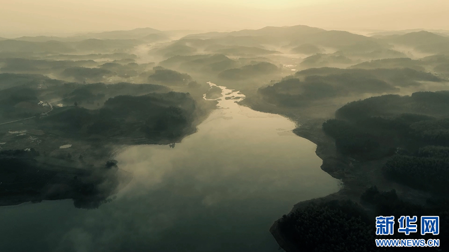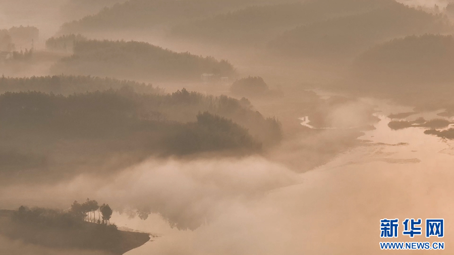 日前,安徽省郎溪县天子湖景区出现云雾日出美景,一轮红日从湖面升起,霞光将树叶、怪石、湖水渲染……宛如一幅充满诗意的山水画。
