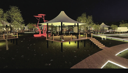 游玩至傍晚需要一处别样的休憩之所,在鹳雀楼景区有一家很值得住一晚休息放松的民宿,那就是鹳栖苑民宿酒店。这个酒店以鹳雀楼的花海为依托,展开建筑的单体布局,又通过阵列组合形成一个大花瓣,客房之间用栈道连接,白天赏花海,夜晚观花灯,好不自在。酒店还有一个可以露营的营地,紧邻黄河还可以烧烤。在接待中心顶层还有一个观光平台,有卡座可以休憩和赏景。夜晚的彩灯亮起,繁花萦绕,让人仿佛置身仙境。
