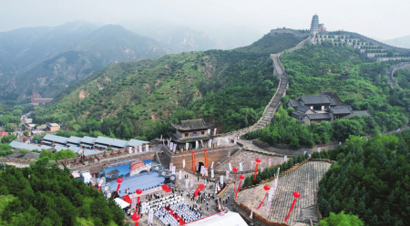 夏日的雁门关山花烂漫,翠林如海,行车穿梭在蜿蜒曲折的山路上,远远地就能望见雄踞在崇山峻岭之间的雁门关关楼,连同两侧屹立对峙的山峰,如同雄鹰展翼,蔚为壮观。
