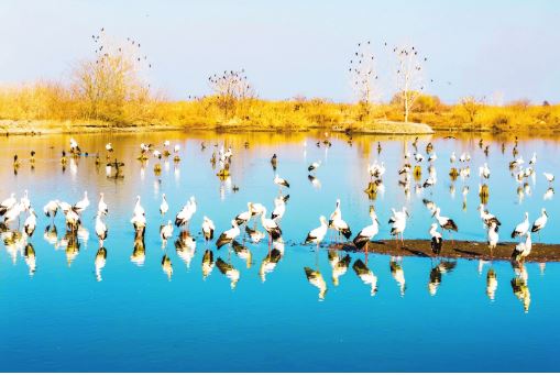 1月10日,鸟儿在江苏兴化里下河国家湿地公园内栖息、觅食。新华社发 周社根摄