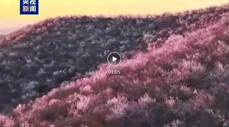 连绵的太行山峦被成片山桃花轻轻覆盖
