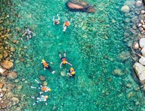 游客在广西猫儿山国家级自然保护区体验“窝囊漂流”。马蜂窝供图