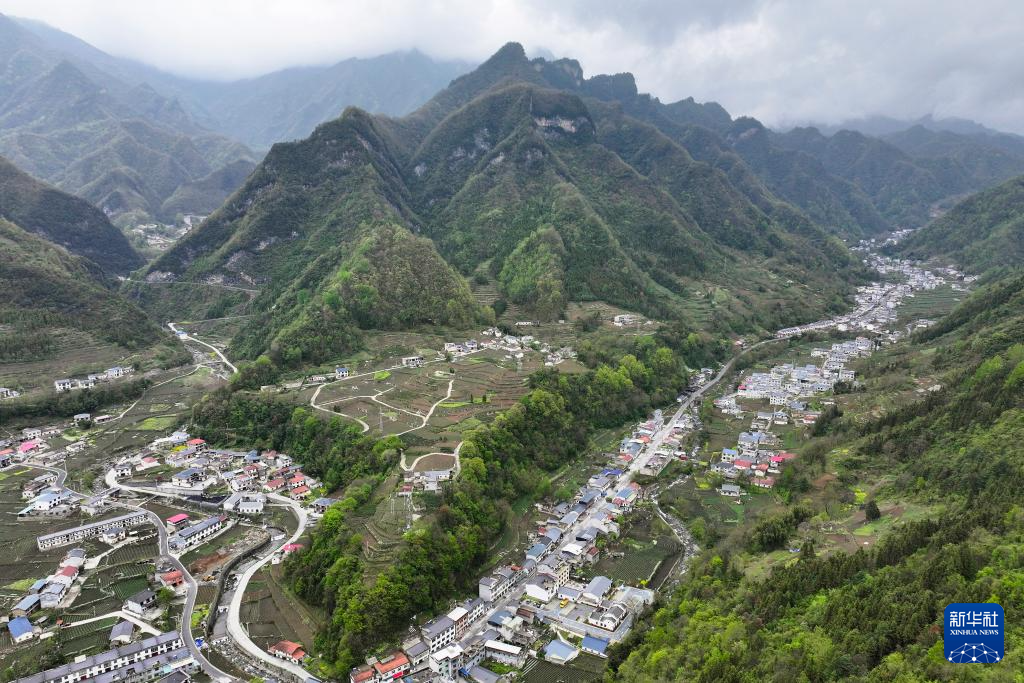 陕西省安康市平利县八仙镇龙门村景色(4月14日摄,无人机照片)。