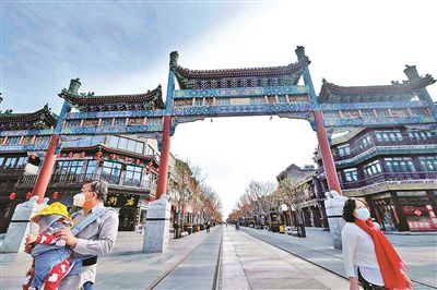 受到新冠肺炎疫情影响,北京前门大栅栏游客较往年减少很多。4月1日,北京青年报记者在前门商业街看到,随着北京市疫情防控取得进展,部分老字号店铺已恢复营业,游客也趁着晴好天气做好防护来到大栅栏游览。