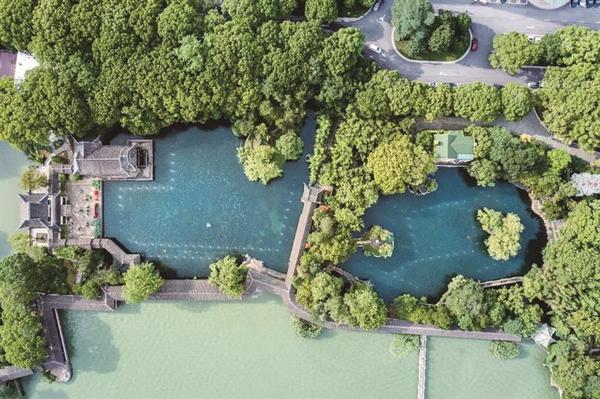 于细微处为水环境“美颜”,让景区水更清、景更美。走进蠡园景区,水质的提升清晰可见。“每隔一两个月我们都会来蠡园,原先这边水中有杂物漂浮,现在基本看不到了,荷塘也变得干净、清透了许多,蠡园有更多角度‘出片’了!”23日上午,市民蔡彧洋与老友到蠡园景区小聚,蠡园水环境的变化让他感到惊喜。现场还能看到工作人员正驾驶小船打捞散落在水面上的枯枝落叶,确保水面干净整洁。“治标更要治本,除了维持水面的洁净,我们重点施策提升水质,保证从高空航拍俯瞰时,蠡园的水是蓝绿清澈的。”蠡湖景区相关负责人表示,针对蠡园部分水域湖底淤泥厚积、水体颜色不佳等情况,文旅集团在蠡园率先开展水环境治理试点,通过投放软体动物、采用带水插种或抛种的方式种植沉水植物、安装曝气增氧系统等方式重构健康的水下生态系统,让水体更加清澈。目前,蠡园景区水域水质已稳定在II至III类水。