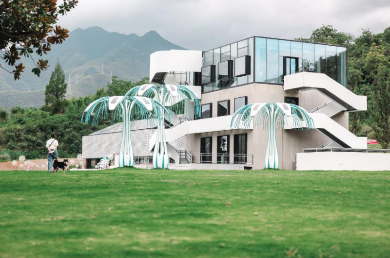 为积极贯彻“两山+双碳”理念,余村创建了中国首个全要素“零碳乡村”。由化工厂改造的新潮建筑“余村印象”落地建成,它可以依靠可再生能源光伏发电系统进行碳抵消,是名副其实的零碳建筑。