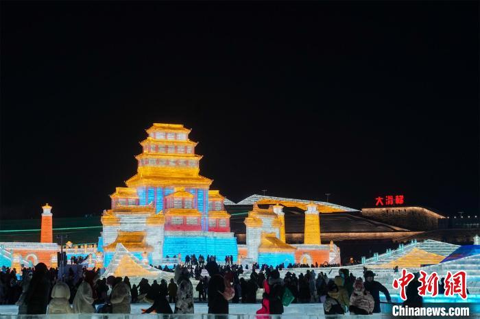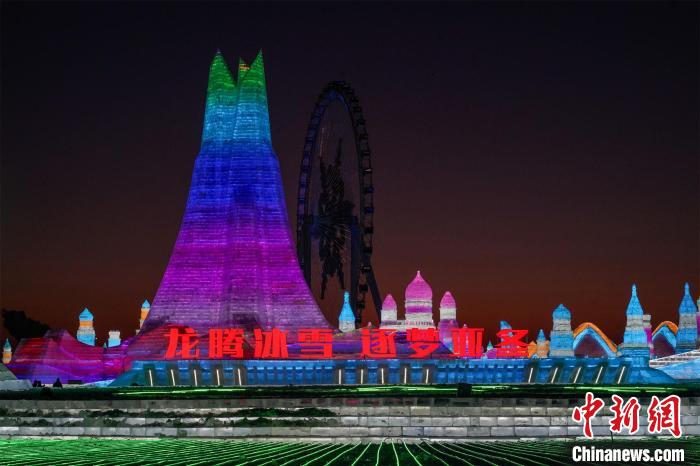 第二十五届哈尔滨冰雪大世界主塔“冰雪之冠”景观 赵宇航 摄
