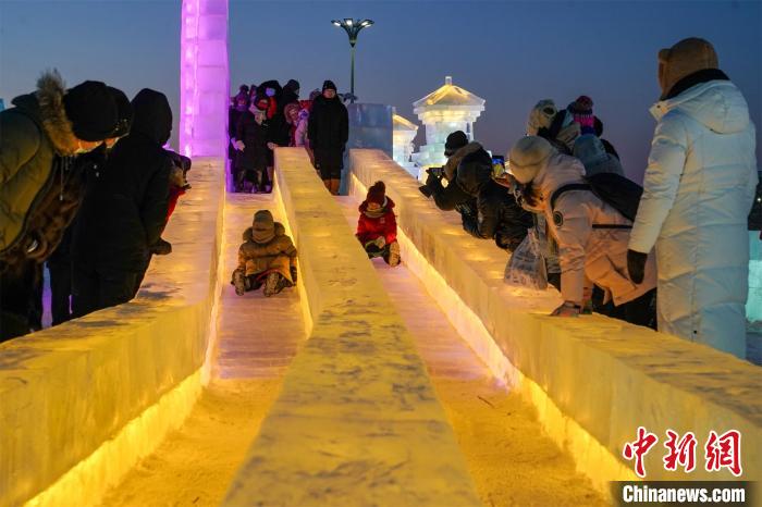 中新网哈尔滨12月17日电 (记者 王琳)第二十五届哈尔滨冰雪大世界于17日迎客。今冬,该景区规模为历届最大,线上线下人气“爆棚”。