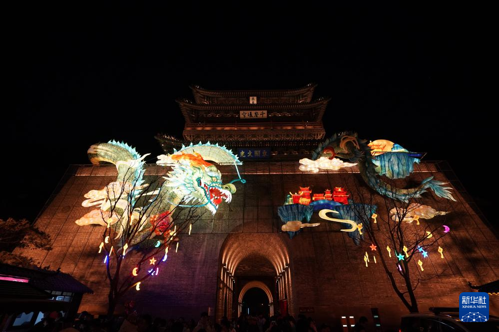 春节期间,在山西省太原市晋源区太原古县城举办的“锦绣太原中国年·凤舞龙城花灯会”上,各类花灯流光溢彩、璀璨夺目,吸引众多游人前来观赏。