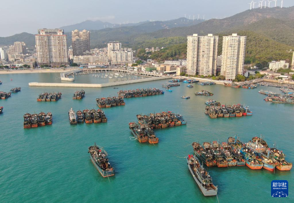 轮船停泊在南澳岛前江码头(3月19日摄,无人机照片)。