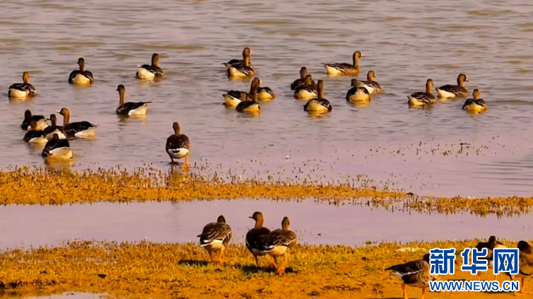 近日,众多候鸟仍在菜子湖湿地流连。新华网发(陈春丽 摄)