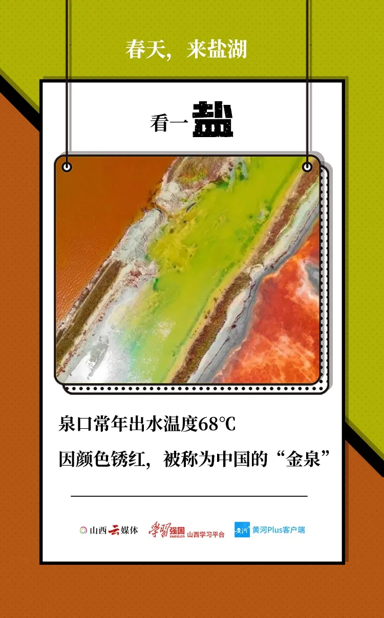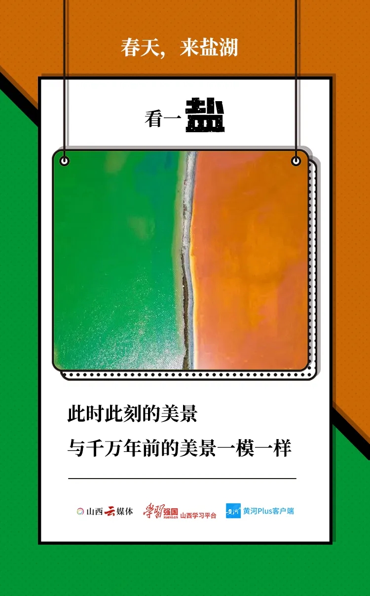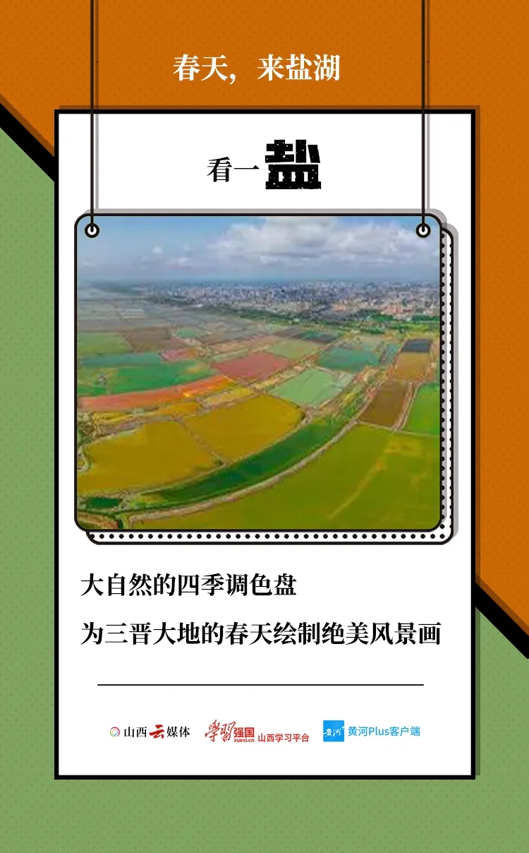 近日,随着气温不断升高,山西省运城市盐湖呈现出五彩斑斓的美丽景观。从空中俯瞰,盐湖宛若巨型大自然调色板,令人陶醉。漫步环湖步道,成群的飞鸟在湖面上嬉戏,发出阵阵鸣叫,中条山、蓝天白云倒映在湖面,与七彩盐湖交相辉映。