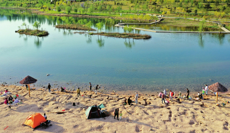 太原市汾河四期,游人享受海滨的感觉。