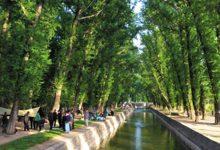 太原市西干渠,市民搭起帐篷喝茶吃烧烤,享受假日时光。