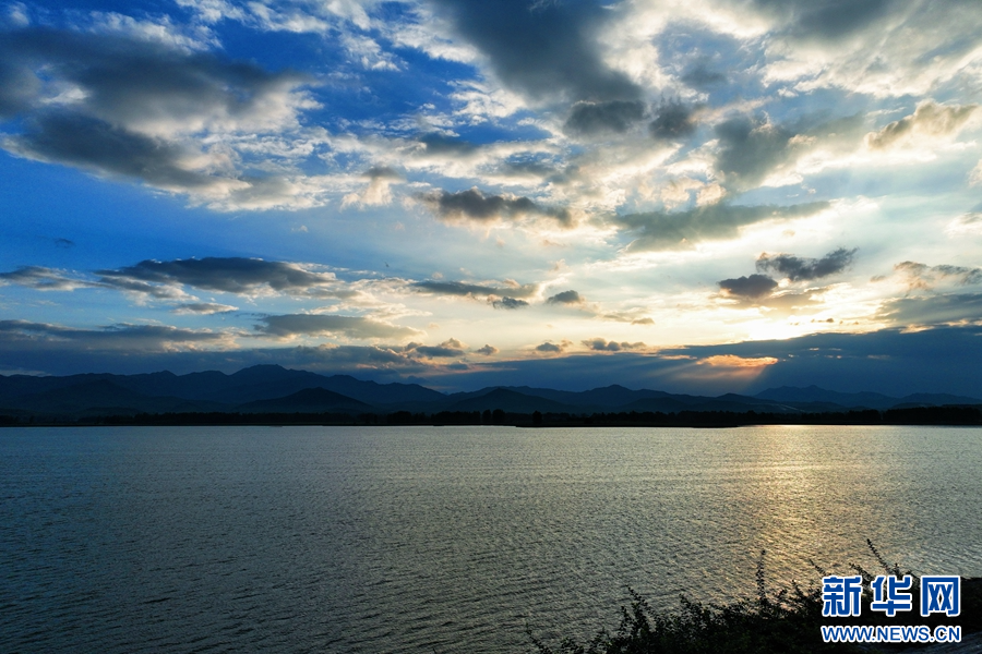 7月27日,在河南省镇平县高丘水库拍摄的朝霞。