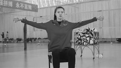 ●双手各持一重物(矿泉水瓶),坐在板凳或椅子上,双脚平放地面,支撑身体保持平衡;