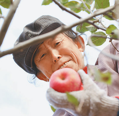 延安市宝塔区柳林镇后孔家沟村的果农在采收苹果。近年来,当地干部大力推广坑施肥水、豆菜轮茬等苹果种植新技术,带领群众增收致富。目前,后孔家沟村年户均收入已超10万元。任增胜摄(资料照片)