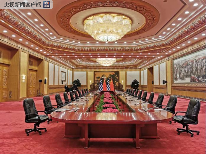 △习近平和希腊总统帕夫洛普洛斯在人民大会堂东大厅会谈。(央视记者荆伟拍摄)