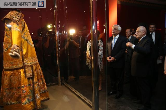 △2018年9月,“重文德之光华:重华宫原状文物展”在希腊雅典卫城博物馆开幕。来自中国故宫博物院的154件清朝乾隆时期珍贵文物在此展出5个月。希腊总统帕夫洛普洛斯参观了展览。(资料图片)