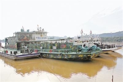 在湄公河“金三角”水域巡逻的中老缅泰湄公河联合巡逻执法编队。本报记者 孙广勇摄