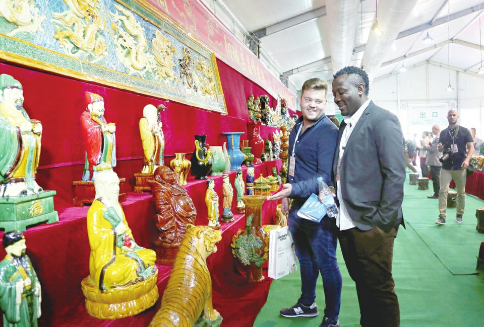 外国客商参观阳城县琉璃产品。 宋岳庭 摄