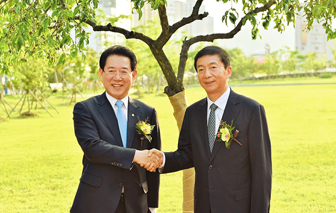 骆惠宁与全罗南道知事金瑛禄共同种植友谊之树。 孙景凡 摄